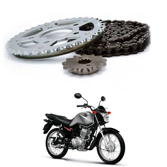 Kit relação sem retentor para Honda FAN 125 ano 2014. Conjunto importado com corrente, coroa e pinhão, ideal para reposição com bom custo-benefício e desempenho adequado no dia a dia.